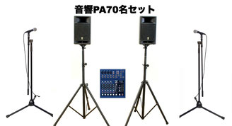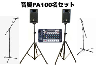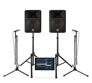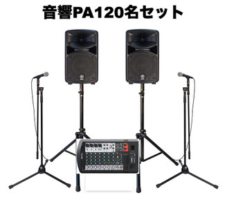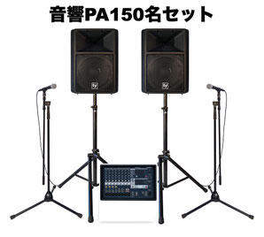 1000~1600W 15inchダブルウーファースピーカーを使ったセットです。 ライブハウス並みの大音響です。 ドラム、各種楽器アンプの音もPAから出力することも可能です。